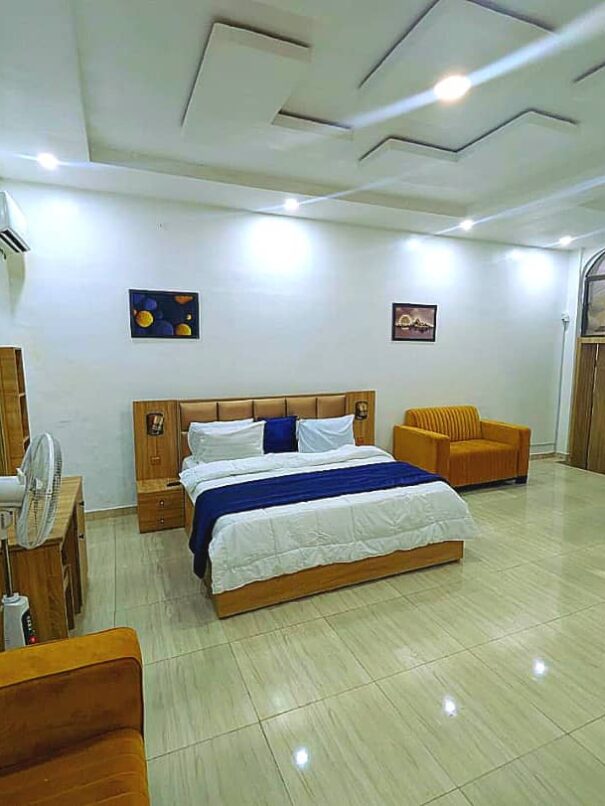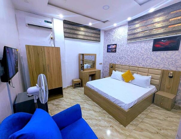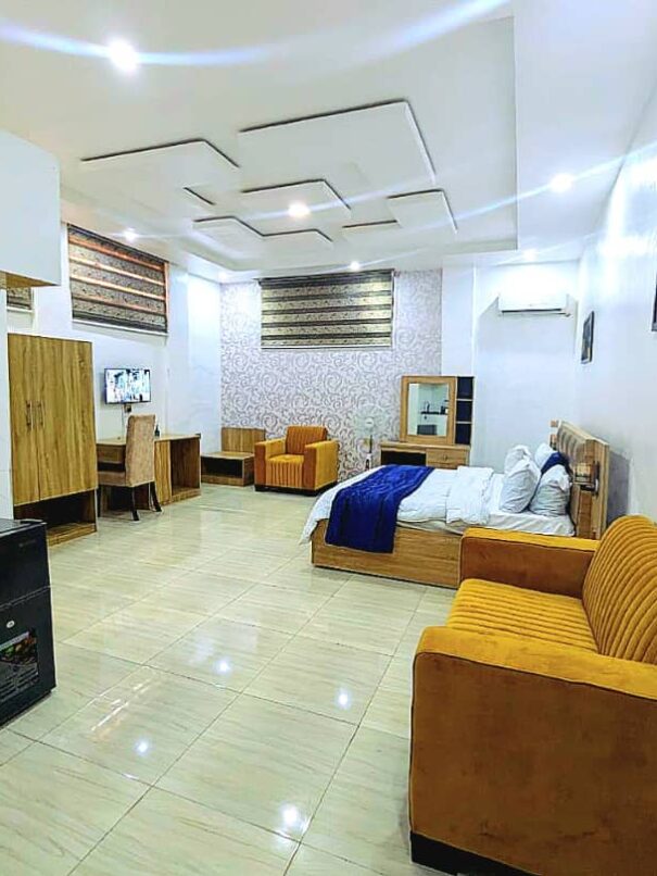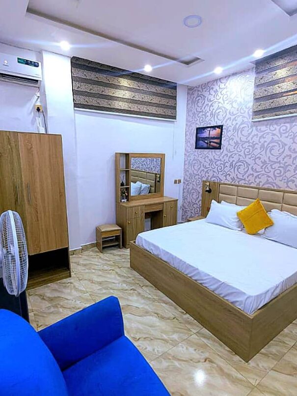 - Fully Kitted Kitchen & Kitchenette in all rooms and apartments. - Swimming Pool for leisure and relaxation - Airport Pickup & Chauffeur Service for seamless arrivals - 24-Hour Power Supply - Premium Security & Access Control - Unlimited High-Speed WiFi - Cable TV + Netflix for unlimited entertainment - In-Room Dining (On Request) - Daily Housekeeping - Ample Parking Space - Central Location – 7 mins to MMA International Airport, Ikeja City Mall & major business hubs